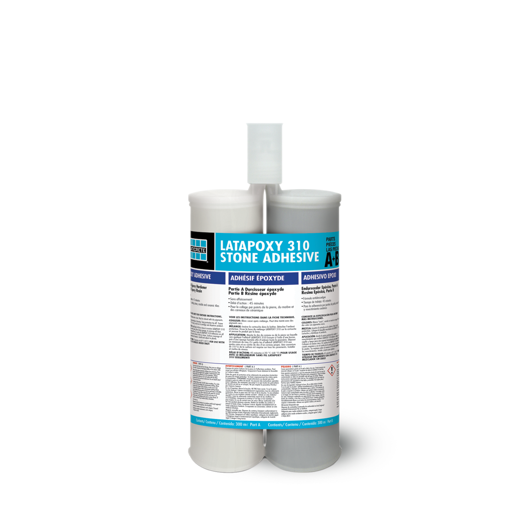 LATAPOXY 310 Stone Adhesive is a two component, high strength epoxy adhesive, which is formulated for spot bonding fixing method of tile and stone installations on vertical surfaces. LATAPOXY 310 Stone Adhesive maintains its non-sag consistency at high temperatures up to 95°F (35°C).